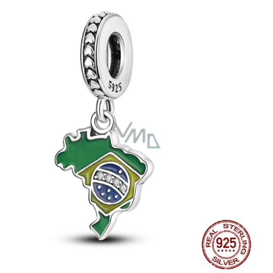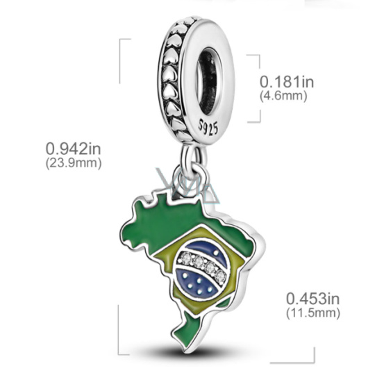 Charm Sterlingové stříbro 925 Brazílie vlajka - houpající se mapa, přívěsek na náramek cestování