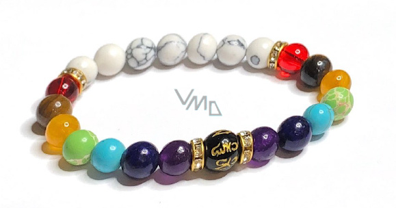 Čakrový náramek léčebný, elastický přírodní kámen, kulička 8 mm / 16 - 17 cm, Reiki modlitební, balanční