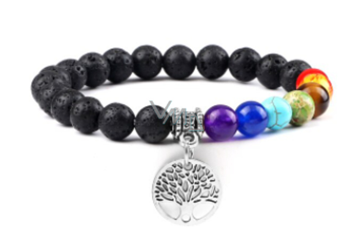 Čakrový náramek Strom života + Láva černá, elastický přírodní kámen, kulička 8 mm / 16 - 17 cm, zrozen ze čtyř živlů