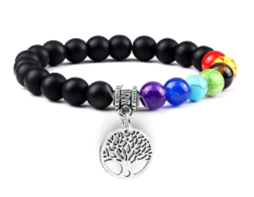 Čakrový náramek elastický Strom života + Onyx, přírodní kámen, kulička 8 mm / 16 - 17 cm, kámen životní síly