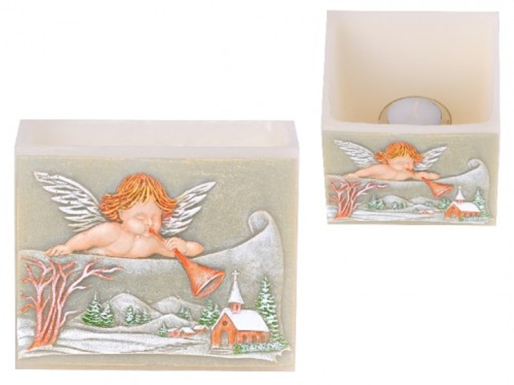 Candles Anděl s trumpetou lampion Kvádr svícen na čajovou svíčku 120 x 120 x 95 mm