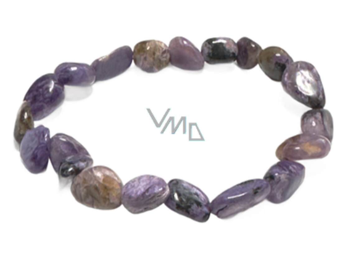 Čaroit / Charoit náramek elastický přírodní kámen, troml 8 x 12 mm nepravidelný tvar / 16 - 17 cm, čáry a kouzla, zázrak z Jakutska