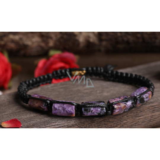 Čaroit / Charoit náramek přírodní kámen, ručně pletený, nastavitelná velikost, čáry a kouzla, zázrak z Jakutska