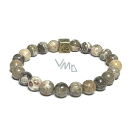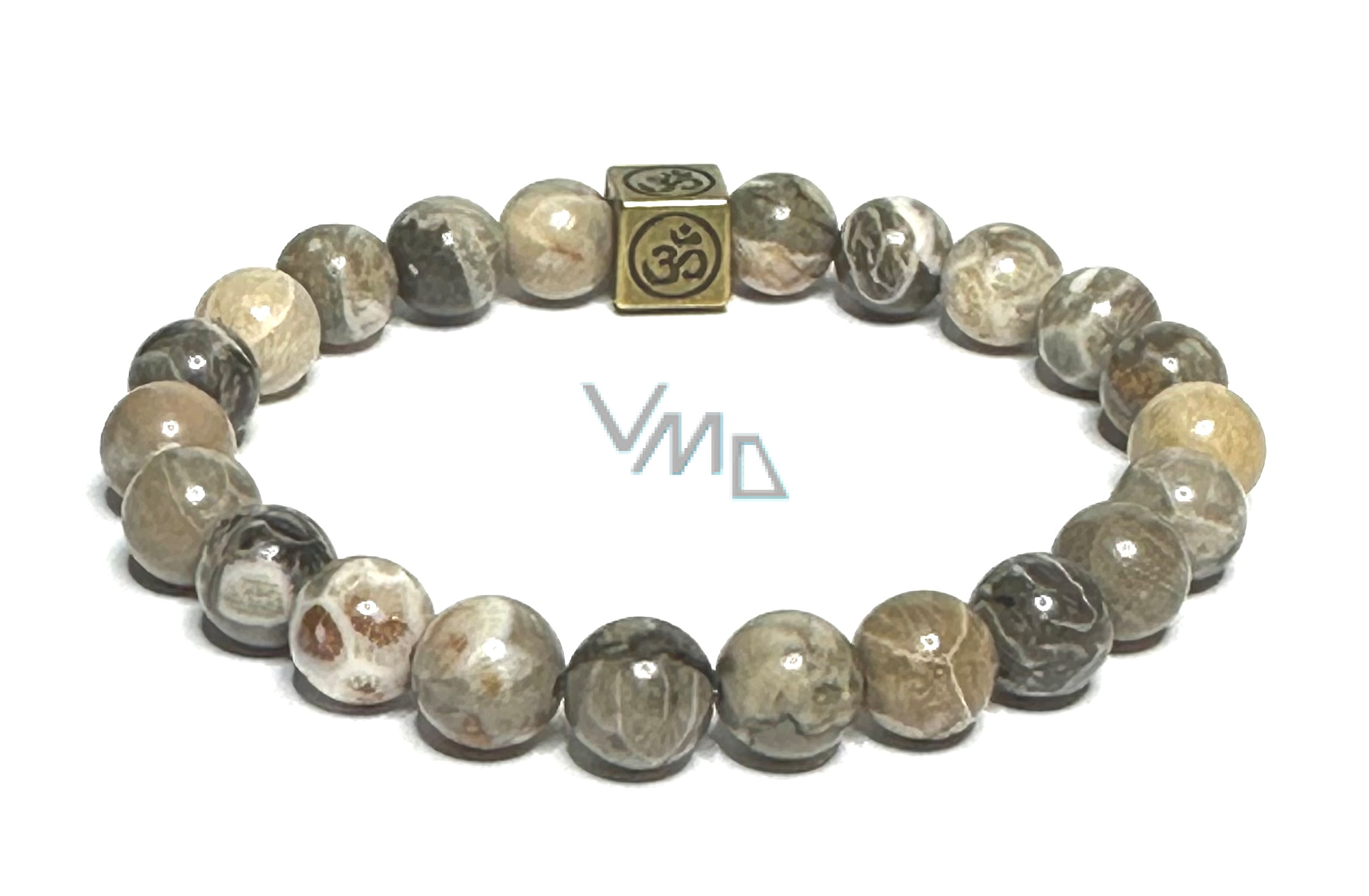 Celestin, chryzantémový s královskou mantrou Óm náramek elastický přírodní kámen, kulička 8 mm / 16 - 17 cm
