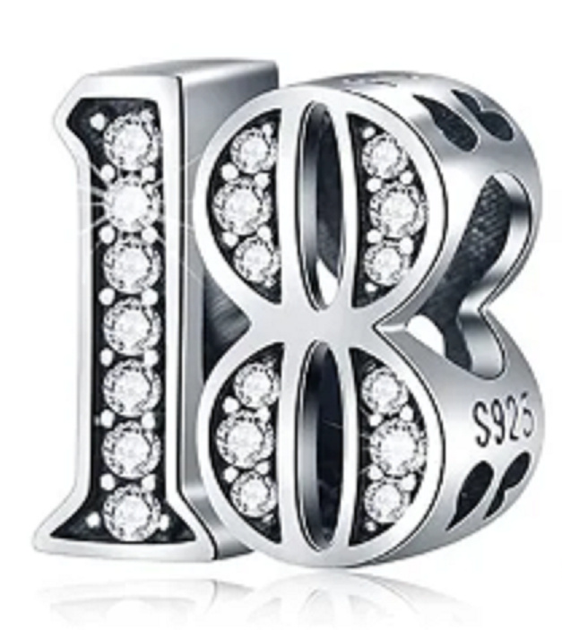 Tento korálek pro náramky, vyrobený na výročí nebo nezbedných 18 narozenin, je zvýrazněn kubickými Zirkony a korálkovými detaily. Číslo 18 je vzkazem, že máte pokračovat po vaší současné cestě s vášní a nadšením. Jedná se také o životní milník v cestě do dospělosti. Mějte víru sami v sebe a ve vaše schopnosti a úspěch vás nemine. Vaše cíle jsou na dosah.