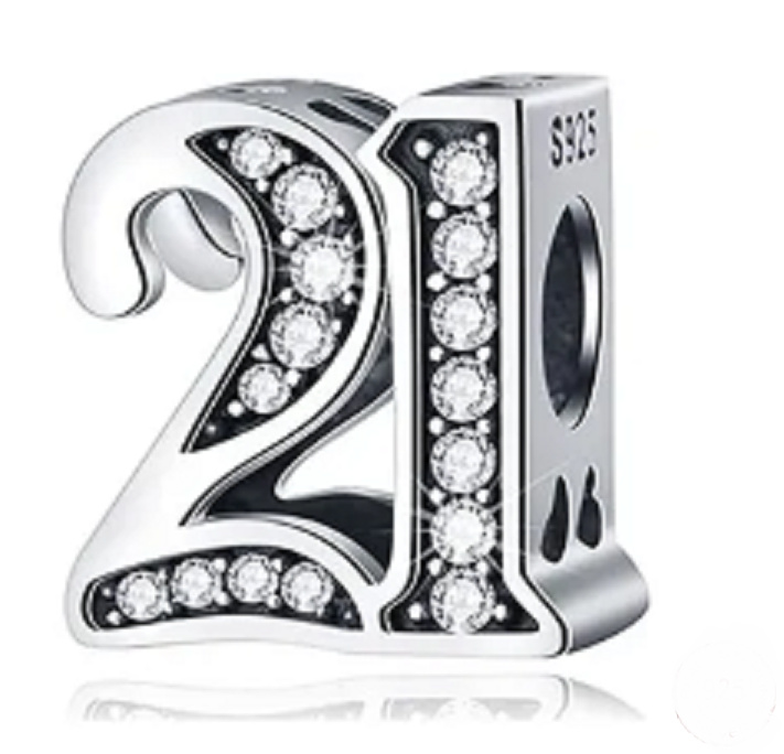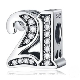 Tento korálek pro náramky, vyrobený na výročí nebo nezbedných 21 narozenin, je zvýrazněn kubickými Zirkony a korálkovými detaily. Číslo 21 je vzkazem, že máte pokračovat po vaší současné cestě s vášní a nadšením. Mějte víru sami v sebe a ve vaše schopnosti a úspěch vás nemine. Vaše cíle jsou na dosah.