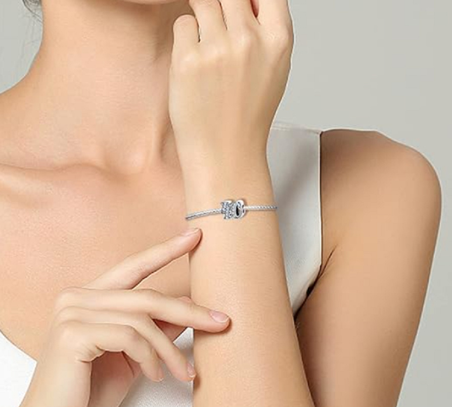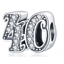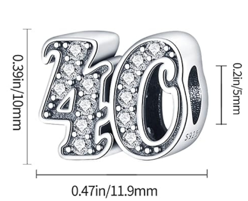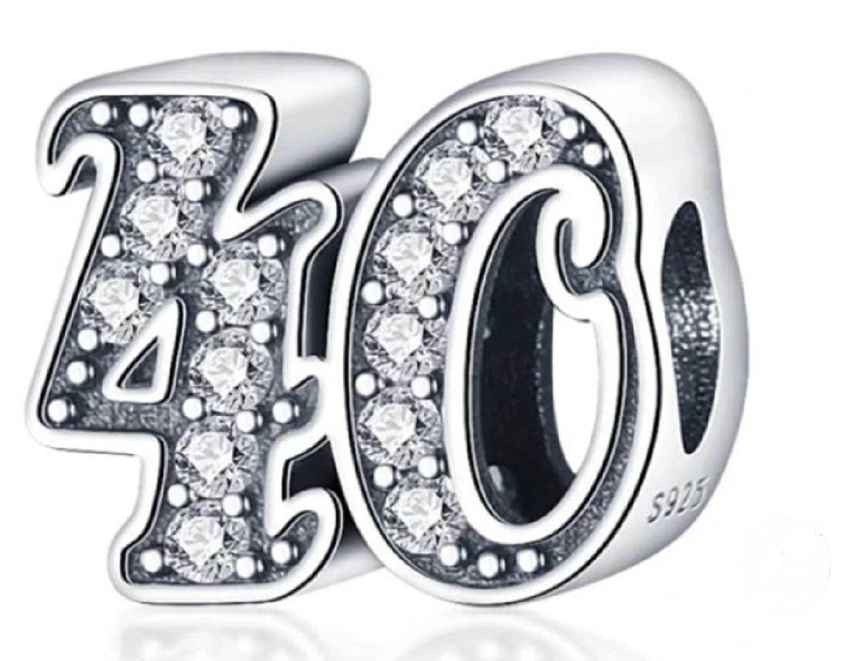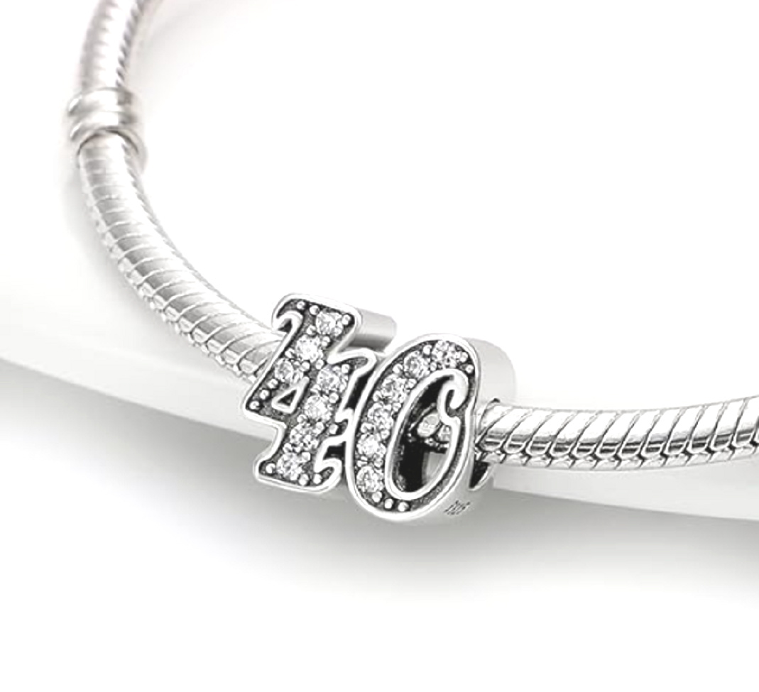 Tento přívěsek pro náramky, vyrobený na oslavu 40. výročí nebo nezbedných čtyřiceti narozenin, je zvýrazněn kubickými Zirkony a korálkovými detaily.