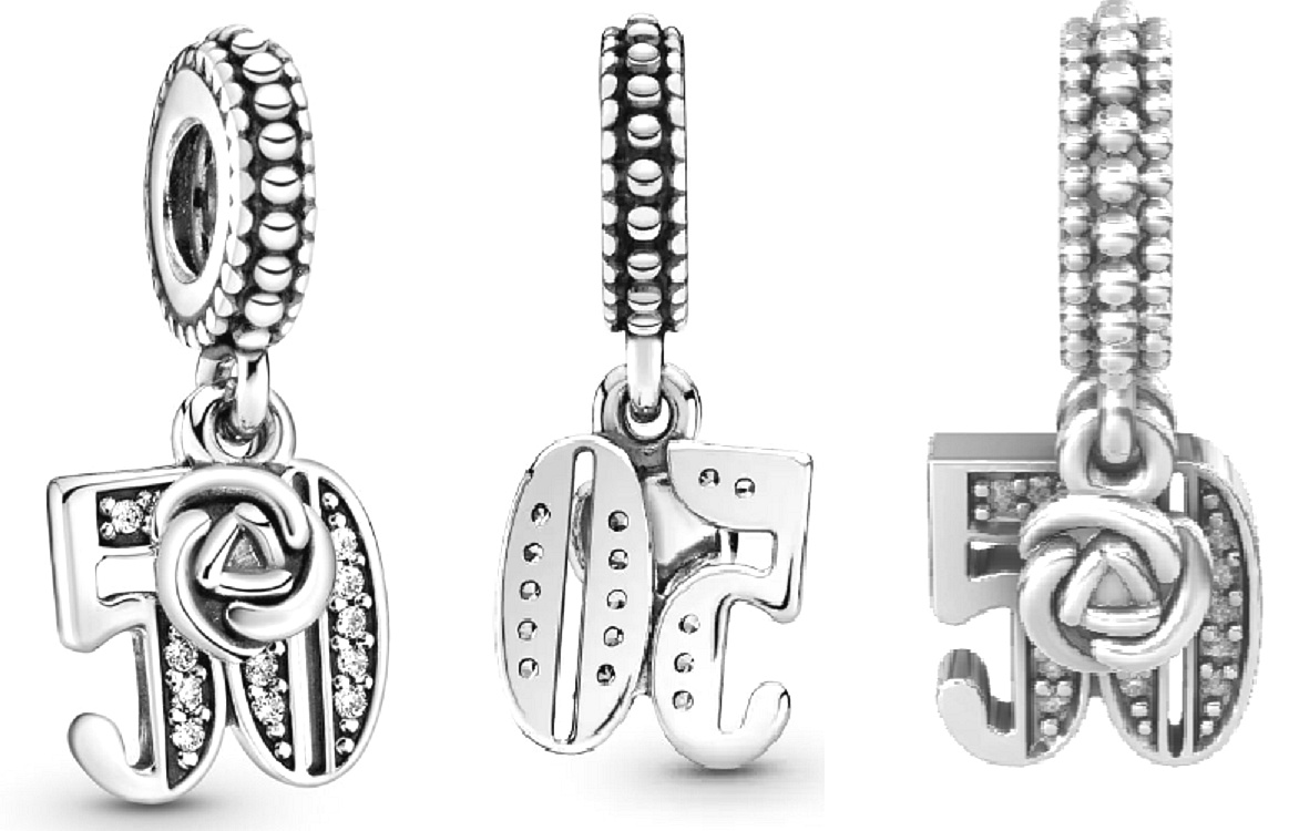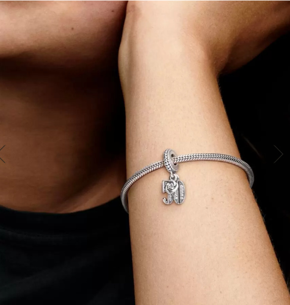 Ať už slavíte 50. výročí nebo půlstoleté narozeniny, s tímto šikovným padesátkovým přívěskem je to pravé. Přívěsek je zvýrazněn Kubickou Zirkonií a detailně zdobený korálky. Miniaturní přívěsek z poupata doplňuje slavnostní styl. Noste nebo sdílejte dílek jako součást svého jedinečného příběhu.