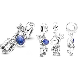Kosmonaut - leťte na Měsíc a hrajte si mezi hvězdami s přívěskem Astronaut. Tento vesmírný průzkumník má na sobě pás z mikrokuliček a průhlednou nádrž na kyslík z krychlových zirkonů. Krásný sytě modrý smalt je ručně malován na hledí helmy a astronaut uchopí třpytivou hvězdu osazenou čirými kubickými Zirkony. Na mohutném prstenci jsou zasazeny další kameny do hvězdicových tvarů.