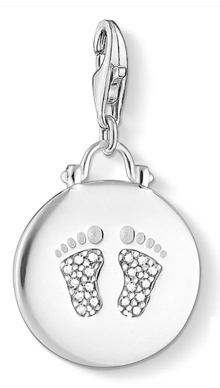 Přívěsek je Vintage inspirované kouzlo s třpytivými dětskými stopami symbolizuje první kroky v novém životě. Ideální dárek k narození, křtinám nebo narozeninám.