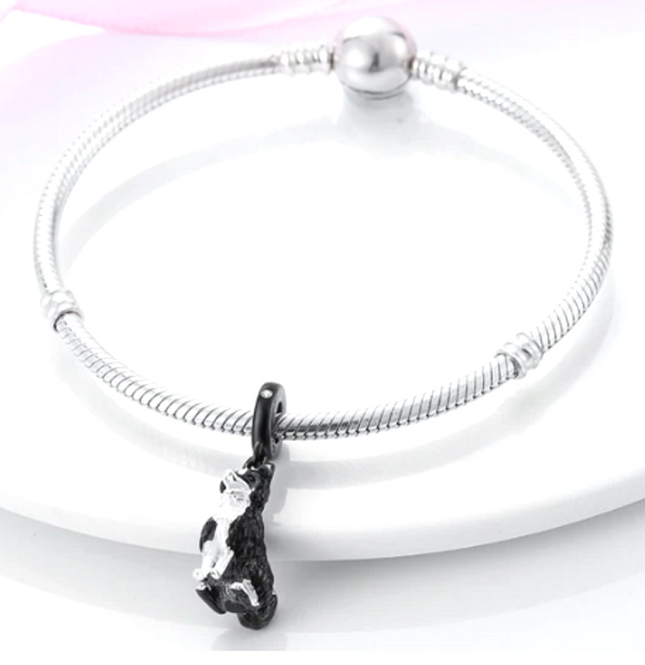 Tento roztomilý psí přívěsek je pro ty, kteří jsou vysoce energičtí a vždy ve skvělé náladě, stejně jako plemeno Border kolie. Tento přívěsek je dekorován hladkým černým smaltem, prsten přívěsku je černý a zdobený bílým třpytivým Zirkonem. Zdůrazňuje osobnost lidí, kteří milují psy. S každým přívěskem vyprávěj svůj příběh a vytvoř si náramek, který odráží, kdo jsi. Tvůj styl. Tvůj náramek. Tvůj příběh.