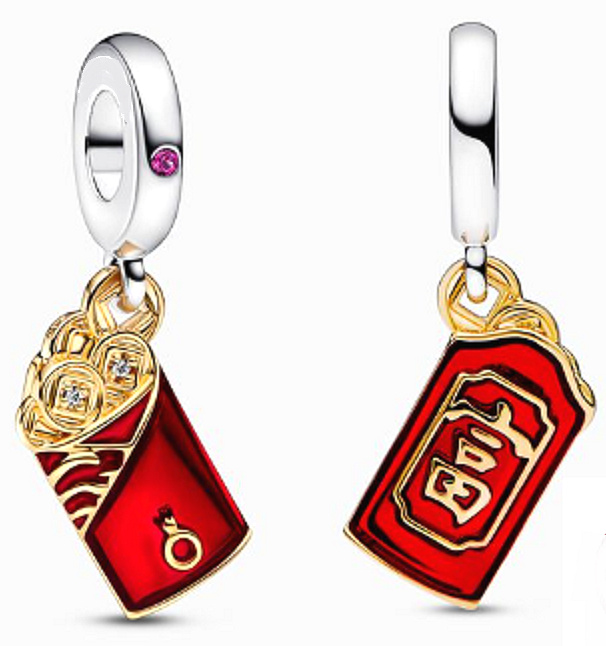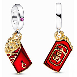 Mějte štěstí na vaší straně. Tento sváteční přívěsek představuje červenou obálku, která se tradičně používá k darování peněz přátelům a rodině jako symbol přání a štěstí do dalšího roku. Obálka, zavěšená na kauci se syntetickým rubínem, je zdobena ručně aplikovaným transparentním lesklým červeným smaltem, 14karátovým zlatem a vyvýšeným znakem Fú, což znamená „bohatý“ nebo „bohatá“. Přidejte si ji do své sbírky nebo ji darujte někomu, kdo, jak doufáme, letos najde trochu štěstí.
