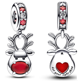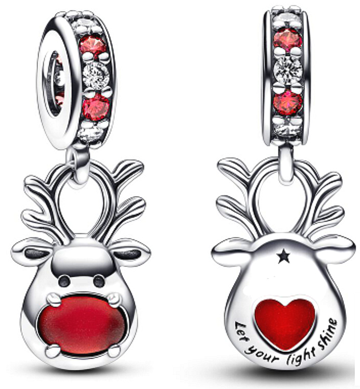 Přívěsek soba s červeným nosem má asi 6 korálků osazených kulatým briliantovým brusem z průhledné syntetické kubické zirkonie, asi 5 korálků osazených kulatým briliantovým brusem z červené syntetické kubické zirkonie. Na zadní straně je nápis "Nech své světlo zářit ( Blooming your light)". Červený nos je vyroben z matného skla, dvojité rohy jsou vroubkované i vzadu. Výřez srdce na zadní straně hlavy, kde sklo odpovídá odhalujícímu červenému sklu na zadní straně.