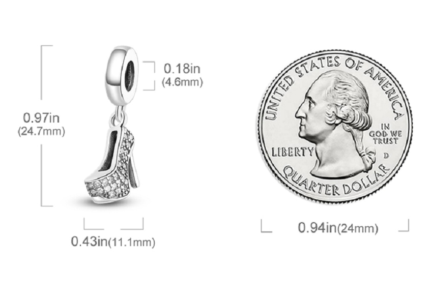 Tento ručně vyrobený přívěsek ve tvaru vysokých podpatků pro vás vytváří magnetické pole. Třpytivé kamínky kubické zirkonie pavé ukazují mimořádné řemeslné zpracování a dodávají náramku zvláštní kouzlo. Lze jej také nosit jako přívěsek na náhrdelník, aby vynikl váš trendový vzhled.