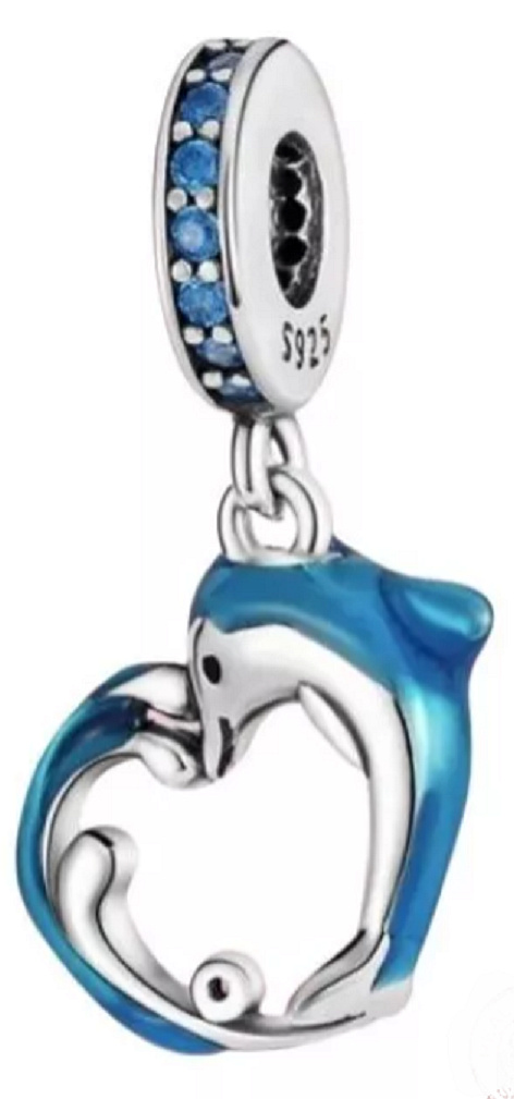 Charm Delfín na vlně ve tvaru srdce, přívěsek na náramek moře