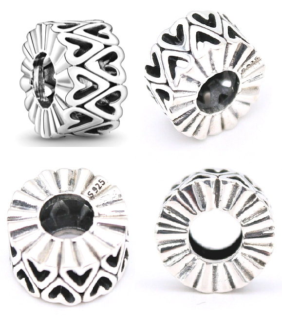 Charm Děrovaná srdce nepravidelného tvaru, stopper, klipový korálek na náramek láska