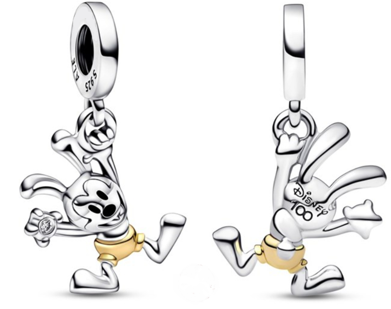 Oslavte jednu z původních postav Disneyho. Oswald s ručně nanášenýma černýma smaltovýma očima a kalhotami. V jedné ruce hravě drží třpytivý zirkon a druhou se houpe. Na památku 100 let magie je na zadní straně jeho hlavy vyryto „Disney 100“. Noste toto kouzlo z limitované edice jako připomínku, abyste dosáhli svých snů – stejně jako Oswald.