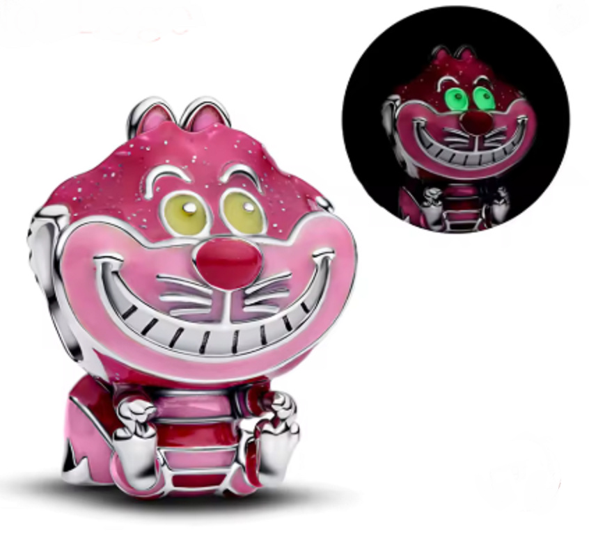 Okouzlující a tajemná kočka Šklíba svítí ve tmě, z pohádky Alenka v říši divů přichází v podobě roztomilého přívěsku. Její typický široký úsměv, růžovo-fialové pruhy a hravý pohled dělají ze šperku nepřehlédnutelný kousek, který okamžitě vnese do tvé šperkovnice trochu fantazie a kouzla.