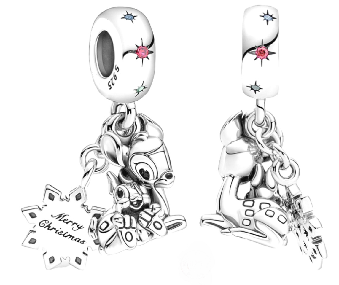 Charm Disney Bambi a Dupík, 2v1 přívěsek na náramek Vánoce