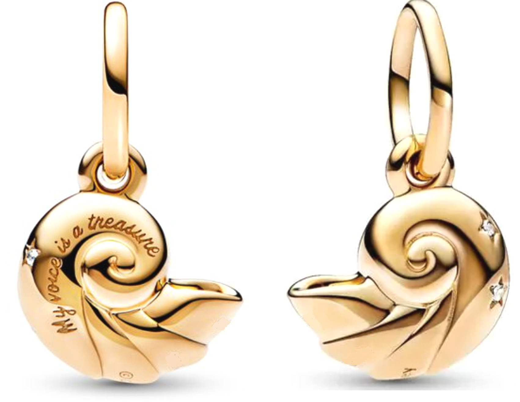 Vyjděte ze své Ulity s přívěskem Disney. Tento přívěsek se vyznačuje rýhovanými liniemi a realistickým spirálovým efektem spolu se čtyřmi třpytivými kulatými kameny ve tvaru hvězdice, které spočívají na straně mušle. „My voice is a treasure“, "Můj hlas je poklad" je vyryto na přívěsek jako připomínka, abyste se nechali slyšet a vždy důvěřovali svým instinktům.