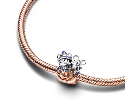 Svítí ve tmě. Užijte si kouzelný Halloween s Halloweenským dýňovým kouzlem Disney Mickey Mouse & Minnie Mouse. Design dýně jemně pozlacený 14k růžovým zlatem se vyznačuje vyřezávanými a drážkovanými detaily, které vytvářejí realistický rozměr. Z dýně vyskočí Mickey a Minnie Mouse. Mickey má na sobě halloweenský kostým se třpytivým smaltem, zatímco Minnie nosí kostým s detaily zářícími ve tmě. Tento hravý kousek, který je slavnostním doplňkem do sbírky všech milovníků Disney nebo Halloweenu, dodá vašemu stylu strašidelnou zábavu.