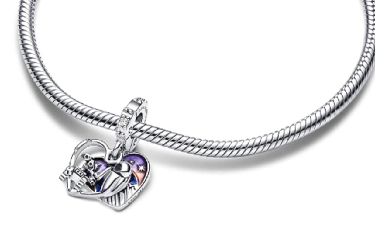 Na druhém plochém srdíčkovém závěsu je vyryto poselství „MILUJU TĚ VÍC, NEŽ SLOVA DOKÁŽÍ ŘÍCT“ a osvětluje jejich svět modrým smaltovaným Měsícem zářícím ve tmě. Přidejte toto kouzlo do své sbírky nebo jej darujte tomu, kvůli komu byste se vydali na Měsíc a zpět.