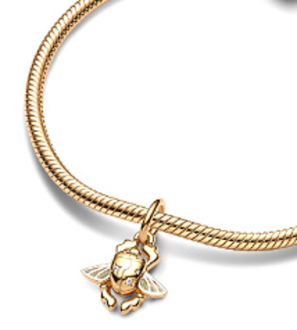 Přívěsek Skarabeus je s jemně zlaceným 14karátovým zlatem a je inspirován zlatým skarabeem, známým z pohádky o Aladinovi a kouzelné lampě. Je klíčem k jeskyni pokladů s jejími nebezpečnými skvosty, kde se Aladin setkává s kobercem a nachází kouzelnou lampu. Visací přívěsek osázený Syntetickými kubickými Zirkony s kulatým briliantovým výbrusem je zakončen křídly smaltovanými technikou plique-à-jour, jež svými reálnými pohyby nahoru a dolů vytvářejí okouzlující efekt.