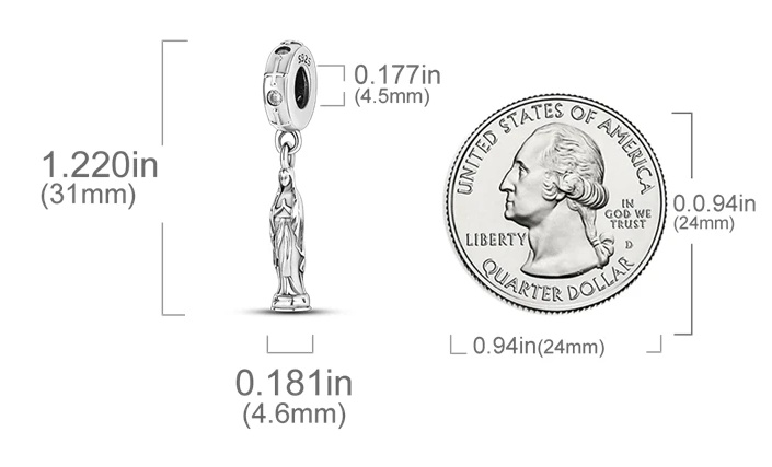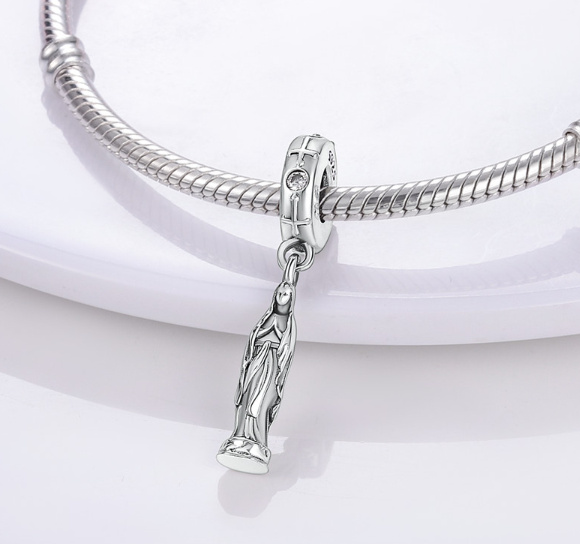 Tento krásný přívěsek má tvar panna Marie Lurdská, je symbolem víry a oddanosti. Přívěšek je pečlivě navržen s precizními detaily, díky čemuž je madona skutečně působivá. Je to dokonalá připomínka víry a oddanosti a bude skvělým doplňkem každého náhrdelníku nebo náramku. Tento vysoce kvalitní přívěsek je vynikající volbou pro každého, kdo hledá duchovní a smysluplný kousek na nošení.