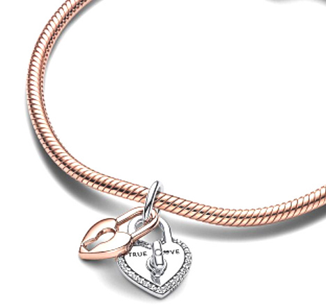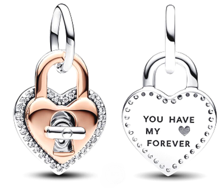 Odemkněte tajné poselství lásky pomocí dvoubarevného otočného visacího zámku se srdíčkem s dvojitým zavěšením. Tento závěsný přívěsek obsahuje dva disky ve tvaru srdce - disk s výřezem pro klíčovou dírku a disk s otočnou lištou. Otočením lišty „odemkněte“ dva disky a odkryjte skrytou zprávu uvnitř: „PRAVÁ LÁSKA“. Další rytina na zadní straně jednoho disku zní: „MÁŠ MŮJ ♥ NAVŽDY.“ Dva kotouče ve tvaru srdce jsou spojeny spojovacím kroužkem, takže je nelze oddělit. Jedinečné a smysluplné kouzlo pro toho, koho milujete.