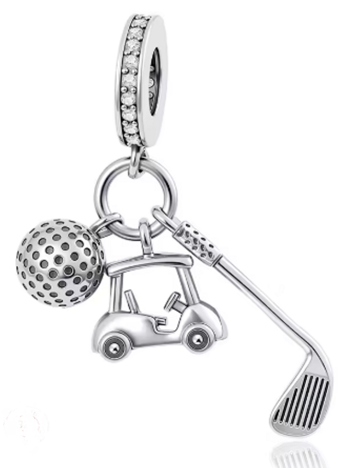 Charm Golfová vášeň 3v1 - hůl, míček a vozík, přívěsek na náramek sport