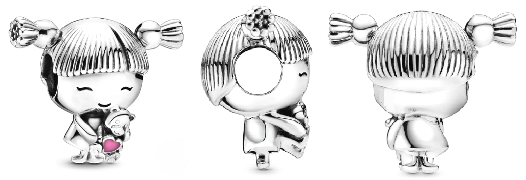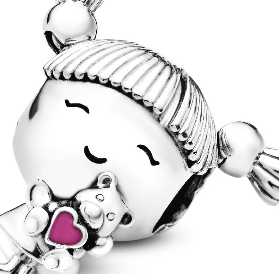 S tímto kouzlem budete vždy nosit svou malou sestru, neteř nebo sestřenici s sebou. Holčička má roztomilé pohyblivé copánky a sladký úsměv a v náručí drží plyšového medvídka, který zase drží srdce natřené růžovým lakem na nehty. Noste tento kousek s dalšími kouzly inspirovanými rodinou na svém oblíbeném náramku, náramku nebo náhrdelníku jako přívěsek.