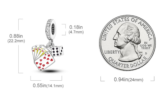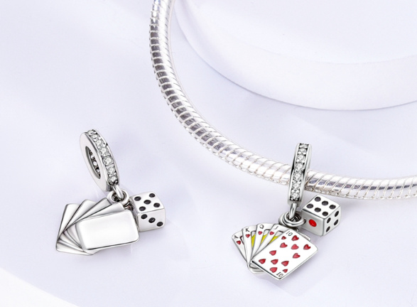 Visací přívěsek s kombinací karet a šťastných kostek, navržený s červeným, žlutým a černým smaltem a zářivě bílými drahokamy Zirkonu, perfektní doplněk do vaší sbírky! Tento přívěsek je vyroben tak, aby vydržel a bude krásným doplňkem vašeho náramku. Se svým propracovaným designem a třpytivým povrchem jistě dodá nádech elegance každému outfitu. Přívěsek se vyznačuje detailním designem, který předvádí umění a preciznost našich řemeslníků, díky čemuž je perfektním dárkem pro někoho výjimečného nebo jako dárek pro vás. Ať už si chcete připomenout zvláštní okamžik nebo jednoduše dodat svému náramku jiskru, toto kouzlo určitě udělá dojem. Přidejte si ji tedy do své sbírky ještě dnes a užívejte si její nadčasovou krásu v nadcházejících letech!
