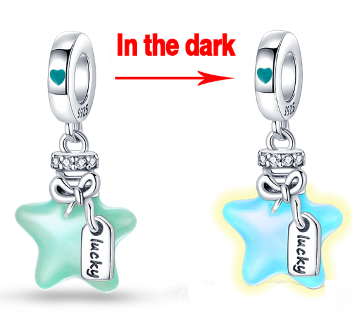 Popis Charm Hvězdná jiskra, 2v1 zářící ve tmě luminozní přívěsek na náramek vesmír
