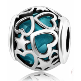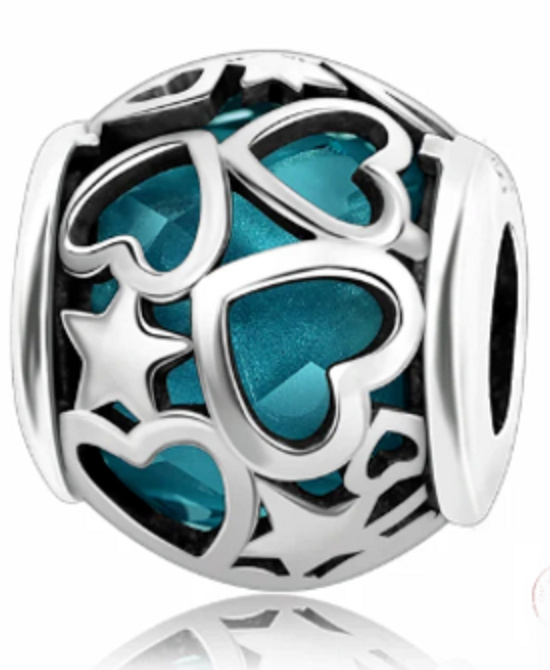 Luxusní a propracovaný korálek v podobě modrého Zirkonu zdobeného ručně vyřezanými nebeskými hvězdami a srdíčky. Obdarujte sebe nebo své blízké tímto kouzlem.
