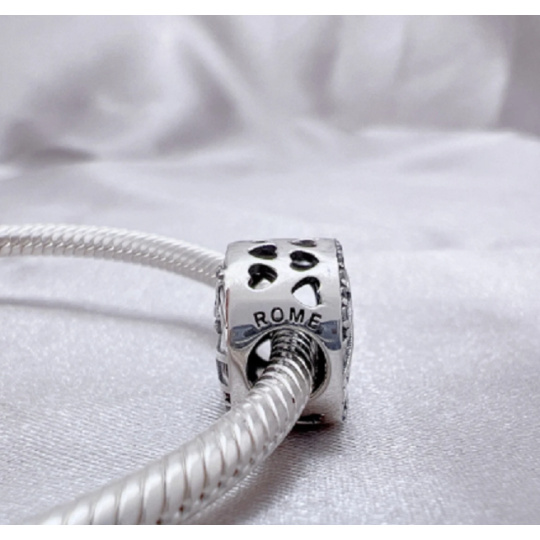 Tento korálek patří do naší cestovatelské kolekce. Přívěsek je určen pro všechny, kteří si chtějí připomenout příjemně strávené chvíle v Říme nebo pro něž je návštěva této metropole zatím nesplněným snem.