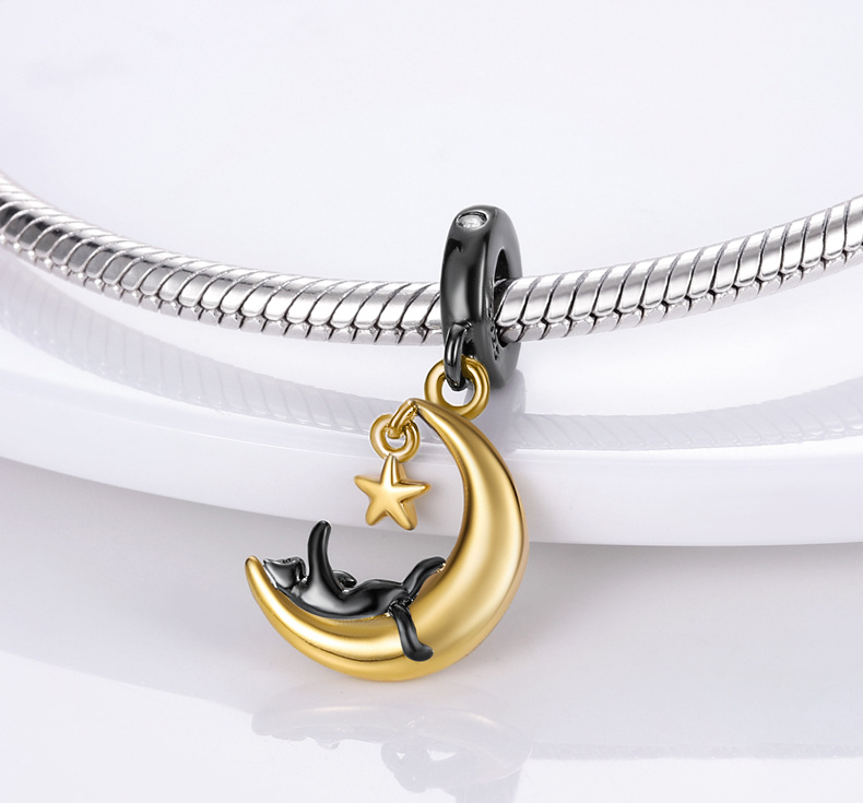 Charm Kočka na měsíci - hravá povaha kočičího společníka, přívěsek na náramek mazlíček