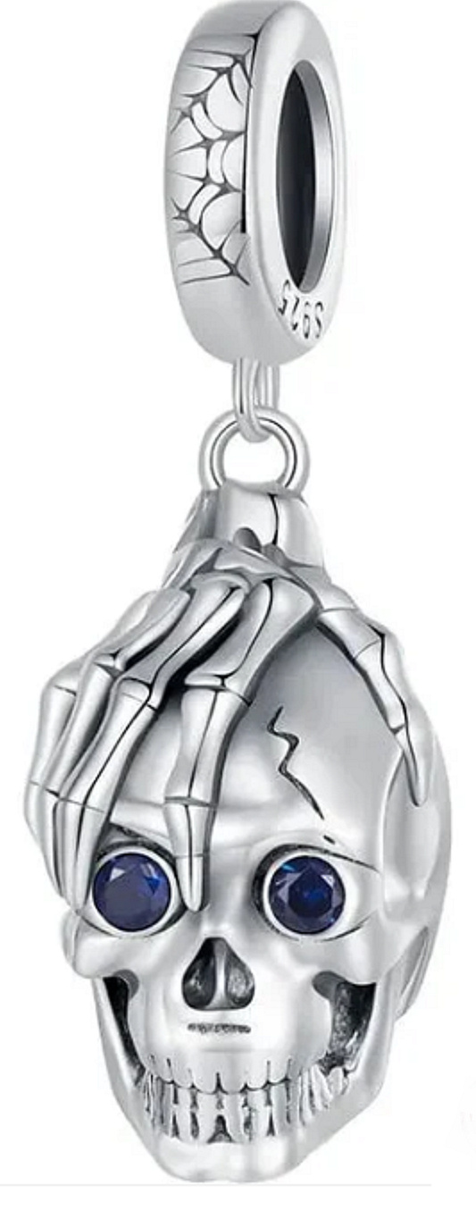 Dodejte letos Halloweenu a svému náramku strašidelnosti pomocí našeho kouzla Lebka v ruce. Tento přívěsek, který má v očích modrý zirkon se perfektně hodí pro váš náramek. Přijměte sváteční náladu s tímto jedinečným a stylovým doplňkem.