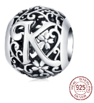 Písmeno abecedy, krásný přívěsek hodí ke všem náramkům Pandora, Tedora, Trollbeads nebo jiné náramky. Šperk, který je navlečen na náramek! Inspirováno písmeny, použijte je k vyhláskování jmen lidí, které máte rádi, nebo k vyhláskování slov, která umíte nejlépe vyjádřit.