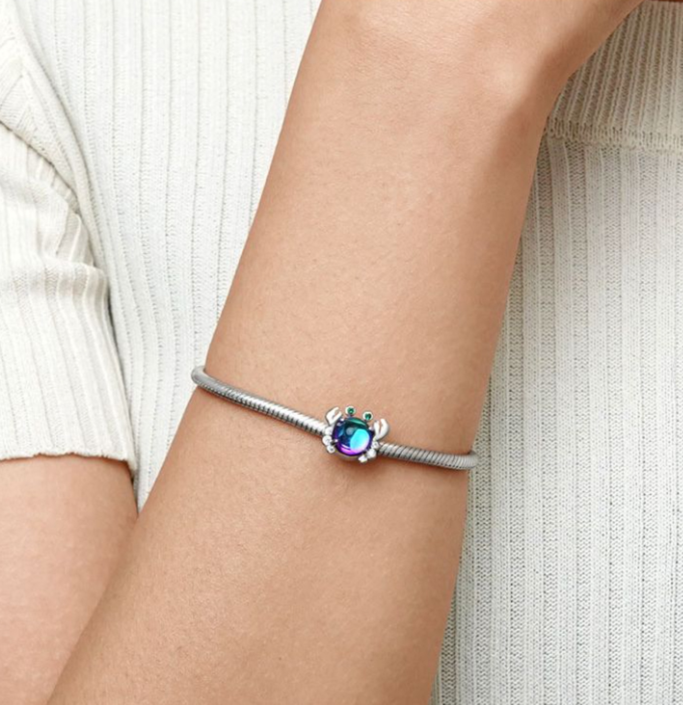 Pojďme k moři s malým krabím kouzlem. Oči vykládané zelenými spinely jsou živé a energické a design hlavního těla s barevným sklem ještě více podtrhuje celkový hravý a roztomilý styl. Vhodné pro všechny hlavní značky náramků a náhrdelníků.