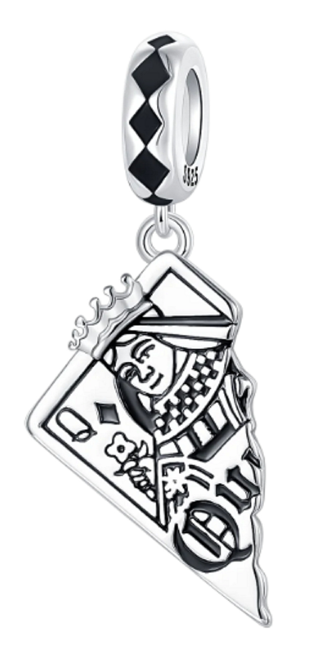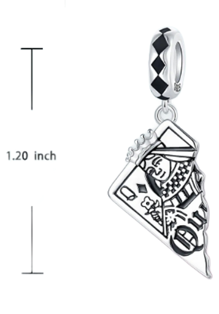Tento originální přívěsek ve tvaru hrací karty s motivem královny je poctou strategii, intuici a ženské síle. Královna v kartách představuje moudrost, vnitřní sílu, eleganci i schopnost ovládat hru života – s lehkostí, ale pevnou rukou. Detailní černobílé provedení dodává přívěsku tajemný, lehce rebelský nádech, který ocení milovníci symboliky, originality a netradičních šperků. Je ideální pro ty, kteří se nebojí riskovat, jít vlastní cestou a věří své intuici.