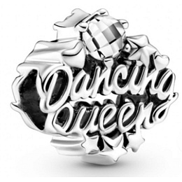 Ukažte svou lásku k tanci s prolamovaným kouzlem. Přívěsek obsahuje slova „Dancing Queen“ - královna plesu, vyrytá a obklopená hvězdami a srdíčky. Třpytivé bezbarvé kameny kubické zirkonie nahoře představují disco světla. Toto kouzlo inspirované tancem vám připomene všechny šťastné chvíle strávené na tanečním parketu a dodá vašemu každodennímu stylu radost, jiskru a grafický nádech.