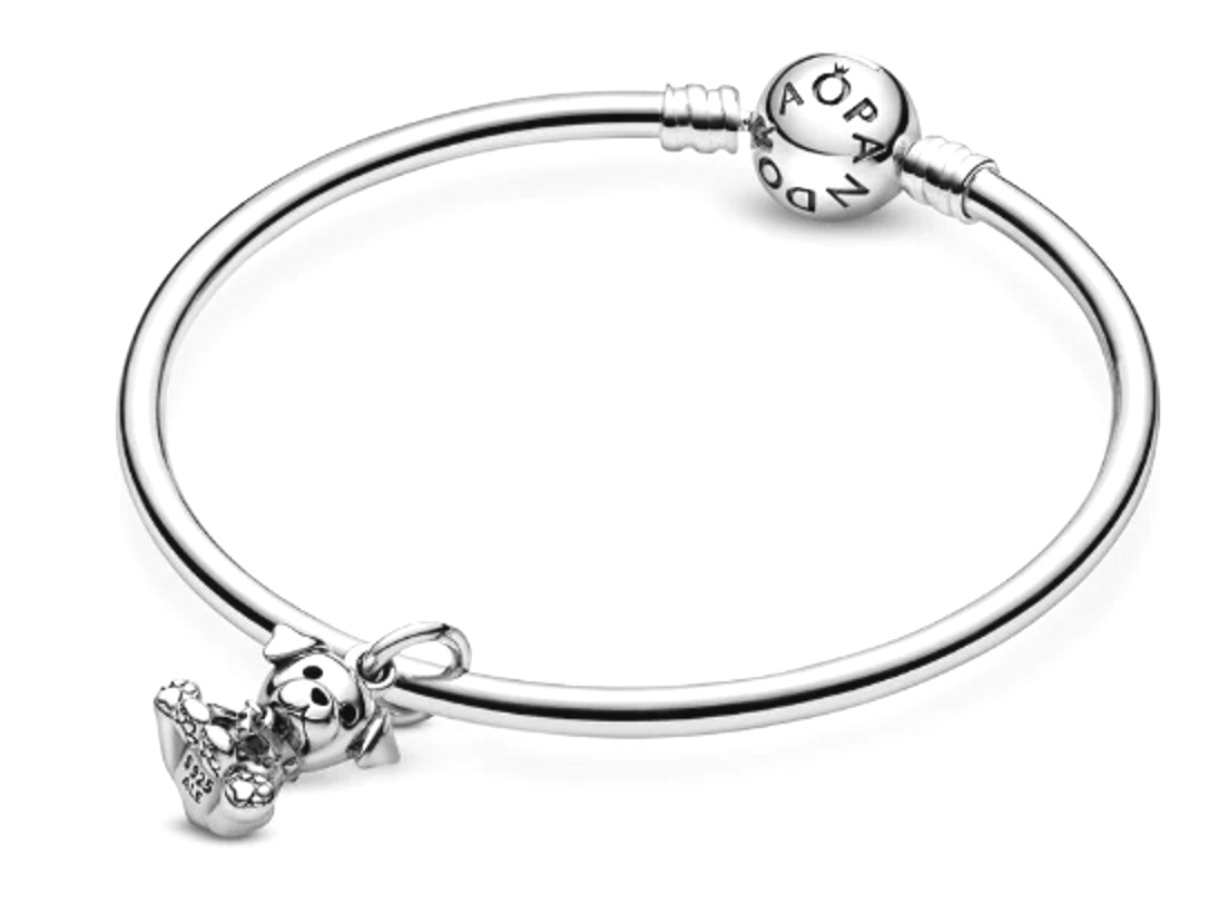 Přidejte své oblíbené zvíře do svého stylového příběhu s labradorským kouzlem. Labradoři milují své lidi, zejména děti. Nejraději by s námi byli všude a nechtějí být příliš dlouho sami. U svých majitelů se vykazují Labradoři zvláště trpělivou a vyrovnanou povahou. Toto rozkošné štěňátko nosí visící obojek ve tvaru kosti zdobený ručně aplikovaným černým smaltem a jeho tlapky jsou zdobeny srdíčky. Noste kouzlo na náramku nebo, abyste si vždy pamatovali svého čtyřnohého nejlepšího přítele.