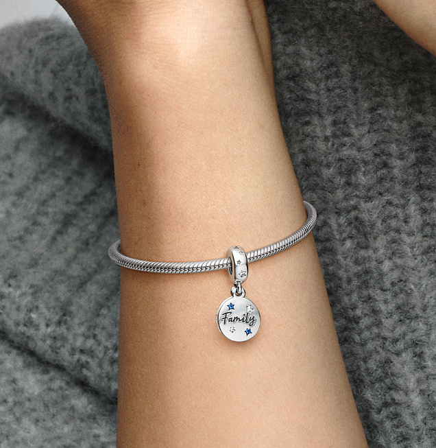 Dvojitý visací přívěsek Rodina a láska nabízí výjimečný způsob, jak mít své milované blízko u sebe. Tento přívěsek tvoří dvě destičky, které vyprávějí příběh prostřednictvím gravírování. Na plochách je napsáno: „Family... are like STARS, you don't always see them... But they are ALWAYS there". Tento visací přívěsek doplňují zapuštěné kulaté čiré kubické zirkonie a modré umělé krystaly, které se třpytí jako Hvězdy. Noste ho na svém oblíbeném řetízku jako připomínku těch, které milujete nejvíc.