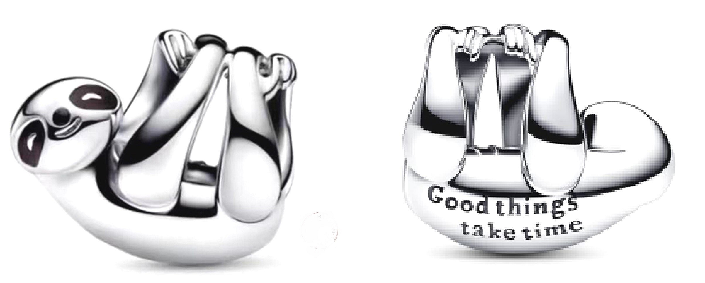 Oslavte sladké a oduševnělé zvíře pomocí závěsného kouzla lenochoda. Lenochod je stočený, jako by visel z větve, jeho HLAVA je nakloněná na jednu stranu s barevnými smaltovanými detaily a rýhovanými liniemi, které dodávají realistický vzhled. Na hřbetě lenochoda je vyrytý vzkaz: "Good thinks take time. - "Dobré věci vyžadují čas." Spárujte toto kouzlo s dalšími návrhy inspirovanými zvířaty, abyste uctili mnoho různých osobností ve zvířecí říši, včetně lenochodovy uvolněné a pomalu se pohybující povahy.