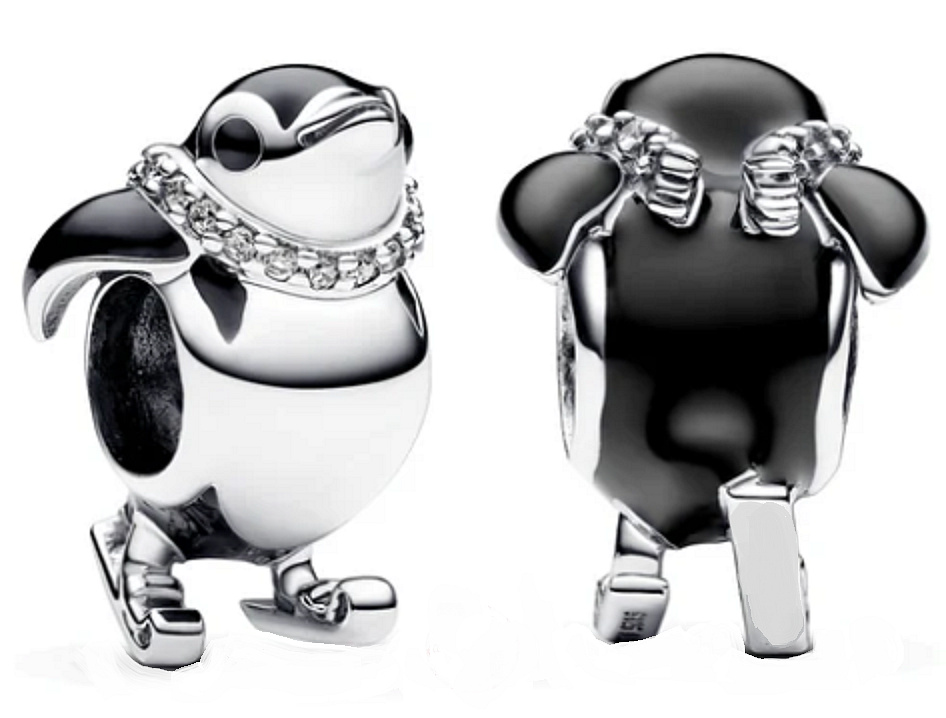 Vydejte se do zimní říše divů s tímto okouzlujícím přívěskem roztomilého Tučňáka v lyžařské póze, jako by se s lehkostí proháněl zasněženou krajinou. Černý smalt na těle, křídlech a očích mu dodává výrazný charakter, zatímco jemně zdobený šátek se třpytivými detaily podtrhuje jeho hravost i eleganci.