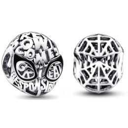 Roztočte svůj vlastní příběh Spider-Mana s přívěskem Marvel Spider-Man Mask. Přední část korálku je vyrobena ve tvaru Masky Spider-Mana a je tvořena grafickým písmem, které vyjadřuje ikonickou připomínku „S velkou mocí přichází velká zodpovědnost“ - „With great power comes great responsibility.“Zadní strana přívěsku obsahuje prolamované pavučiny, zatímco přední strana obsahuje černé smaltované obrysy očí. Přidejte tento svérázný přívěsek na svůj náramek, náušnice nebo držáky na přívěsky jako připomínku, že jste úžasní takoví, jací jste.