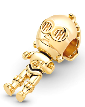 Originální přívěsek se známým robotem C-3PO je ceremoniální a diplomatický droid vytvořený mladým Anakinem Skywalkerem. On a R2-D2 jsou blízcí přátelé a jsou nerozluční. Může být viděn v mnoha významných událostech a klíčových bitvách v galaxii. Oči mají mřížkovité sochařské textury, končetiny mají výrazné robotické detaily a pas je zdoben kruhem z černého smaltu. Končetiny se mohou otáčet o 180 stupňů.