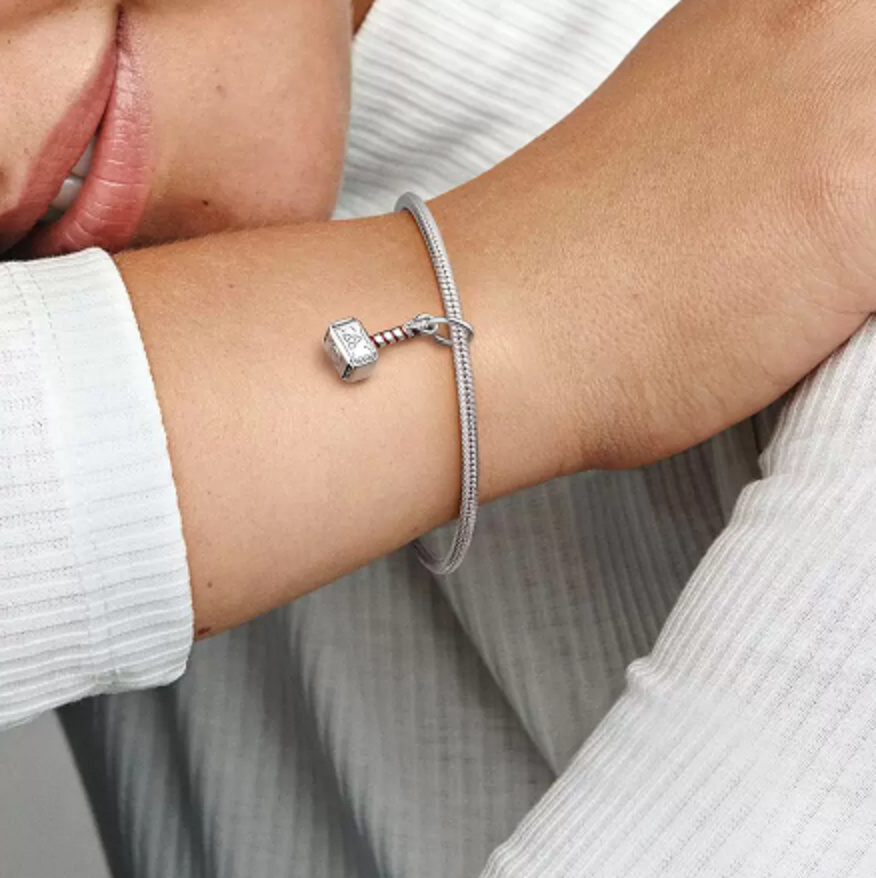 Sbírejte tento přívěsek a další své oblíbené superhrdiny na svém hadím článkovém náramku Pandora Moments Marvel The Avengers s kuličkovým zapínáním a vyraženým logem.