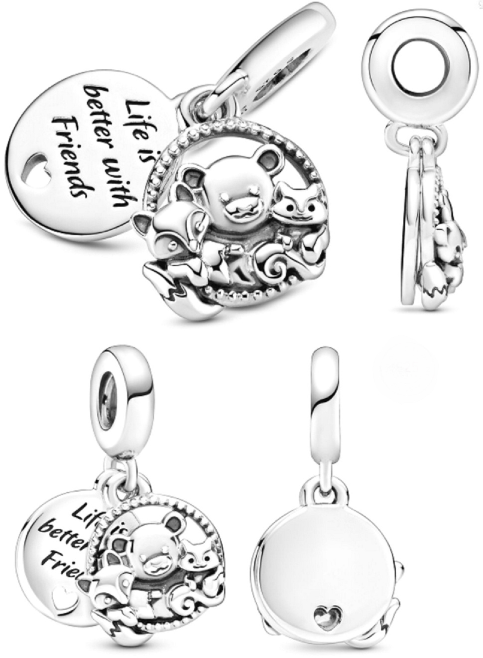 Charm Medvídek, liška a veverka 2v1, přívěsek na náramek přátelství