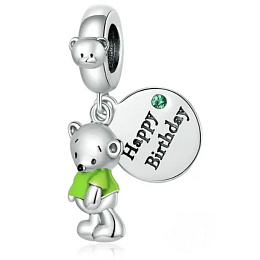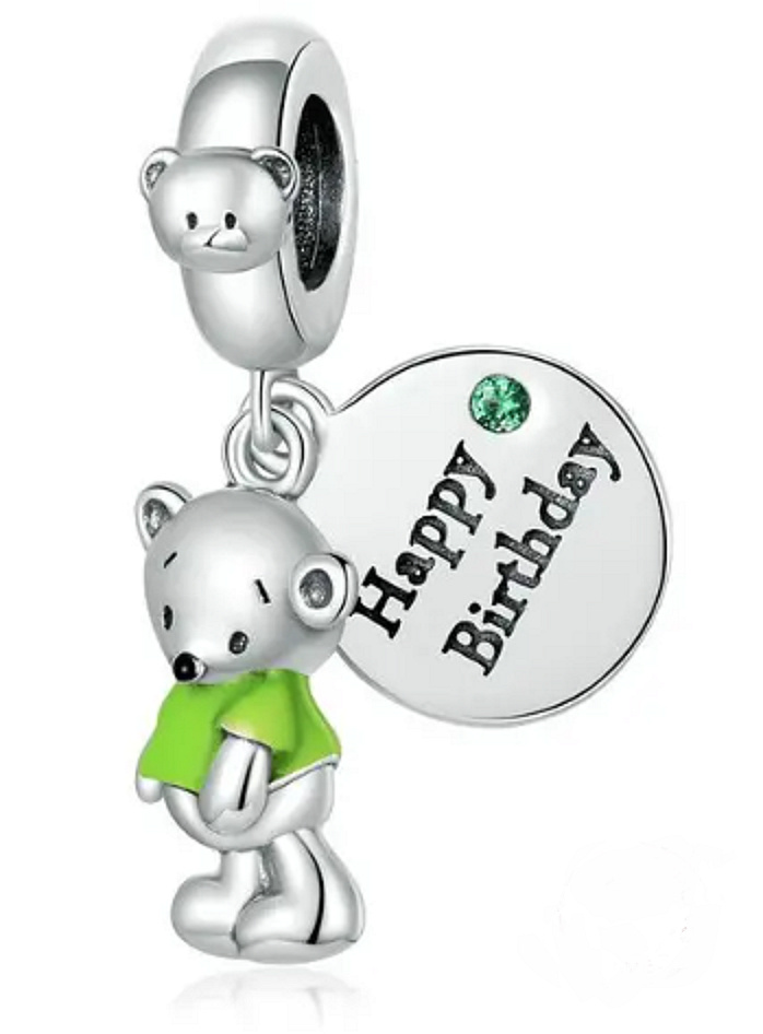 Roztomilý medvídek potěší každého kdo slaví narozeniny. Přívěsek s prvky černého smaltu a triko medvídka je potaženo zeleným smaltem. Mince je osazena zeleným kubickým Zirkonem a jsou na ni vyryty slova "Happy Birthday" - krásné narozeniny. Popřejte netradičním dárkem, který určitě potěší!